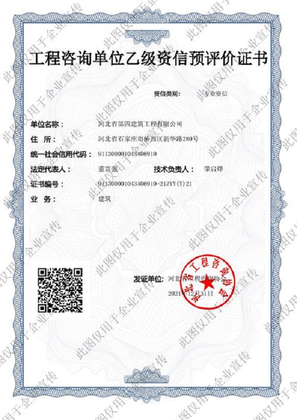 河北四建喜获“工程咨询单位乙级资信预评价证书”